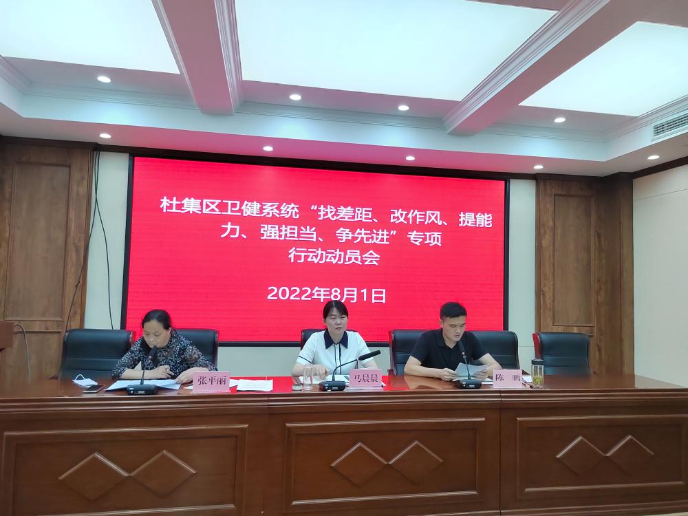 会上,杜集区卫健委副主任张平丽传达学习中共杜集区委 杜集区人民政府关于印发《杜集区“找差距、改作风、提能力、强担当、争先进”专项行动方案》的通知。卫健委党委书记、主任陈鹏传达学习全区第二季度工作点评会议暨“找差距、改作风、提能力、强担当、争先进”专项行动动员会会议精神,并对此次专项行动进行了工作部署。