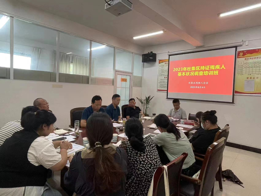 8月4日,杜集区采取“以会代训”的形式,举办2023年持证残疾人基本状况调查培训班,区残联全体人员和镇(街道、开发区)残联负责人参会。