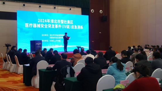 12月10日,2024年淮北市暨杜集区医疗器械安全突发事件(IV)应急演练在杜集区成功举行。此次医疗器械安全突发事件(IV)应急演练省内尚属首次,本次演练由淮北市市场监督管理局、安徽省药品监督管理局第四分局主办,杜集区人民政府承办。