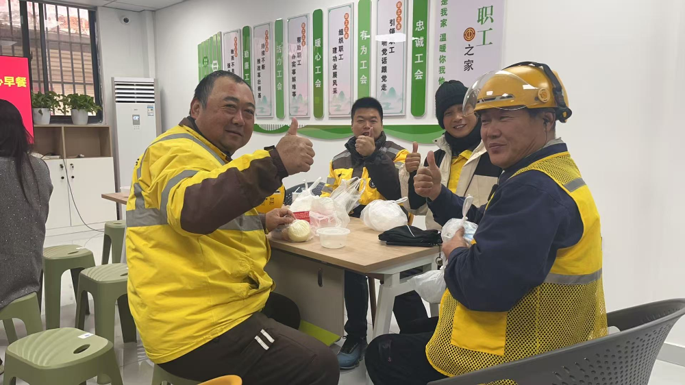 活动现场气氛融洽而温馨,职工服务中心工会驿站内香气四溢。营养丰富的牛奶、鸡蛋、包子,搭配一碗饱含温情的“暖心汤”,不仅暖了户外劳动者的胃,更驱散了他们清晨的疲惫。驿站志愿者们热情地将早餐双手奉上,接过早餐的环卫大姐脸上洋溢着幸福的笑容,连连道谢:“工会太贴心了!早上出来干活早,顾不上吃饭,没想到工会给我们准备了热乎饭。这早餐吃得身子暖,心里更暖!”