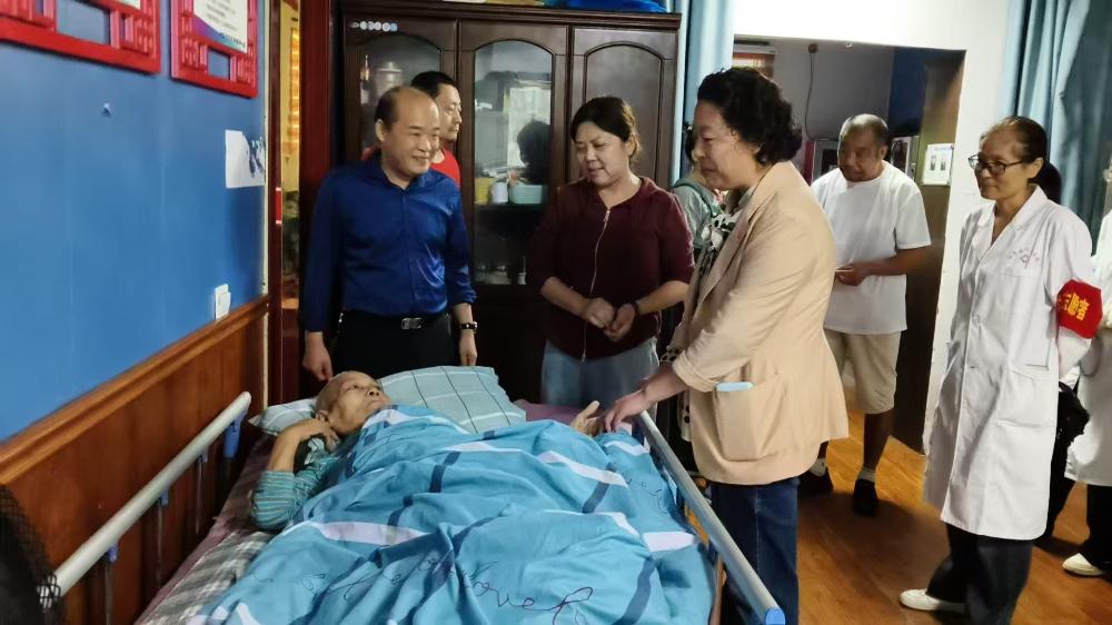 考察伊始,养老公寓负责人金花院长引导医疗团队参观了老人居住区、活动中心和康复理疗室。在一位失能老人的床前,区人民医院公卫科主任周钰细致询问了老人的日常护理、用药情况及慢病管理流程。“这位老人有严重的心血管疾病和压疮风险,目前的护理很用心,但如果能有专业的康复师定期介入,并建立更精细的电子健康档案,对延缓并发症会更有帮助。”经过袁晓梅院长现场观察,直接点出了当前一般养老机构在专业医疗支撑上的“短板”——生活照料有余,但精准医疗干预不足,还需进一步完善床边、身边服务,瞄准老年人的关切点,破解他们的现实痛点,让康复需求触手可及。