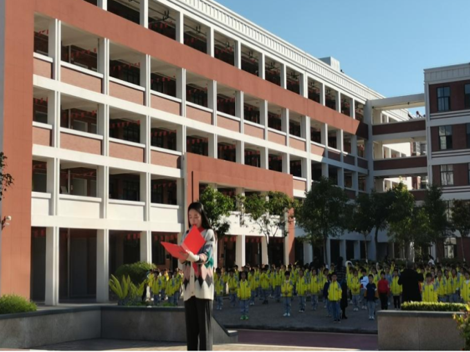 伴随着雄壮的《义勇军进行曲》,五星红旗冉冉升起,全体少先队员肃立致敬、行队礼。升旗仪式后,红领巾巡讲团以 “身边的变化看成就” 为主题开启宣讲。辅导员避开复杂理论,用 “嫦娥探月带回月球土壤”“高铁穿梭让远方变近”“校园里的智慧课堂” 等队员们熟悉的事例,生动解读国家发展成就。队员代表用稚嫩的语言分享 “我眼中的家乡新貌”,从小区的健身设施到家门口的口袋公园,从便捷的网上缴费到丰富的课后服务,让 “国家好、家乡好、我们才好” 的理念深深扎根。