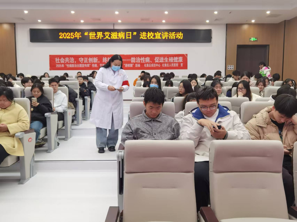 活动中,区疾控艾防科主任葛畅以《青春有爱,生命无“艾”》为题,结合工作经验,系统讲解了艾滋病的基本知识、流行形势、防控措施及相关政策,并通过典型案例分析,引导学生树立正确防艾观念,明确大学生在艾滋病防治中的责任与作用。