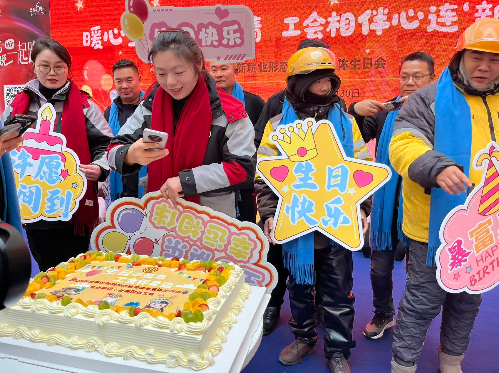 寒冬送暖,温情相伴。12月30日上午,杜集区总工会在吾悦广场举办新就业形态劳动者集体生日会暨新就业形态友好商圈揭牌仪式,15名网约车司机、快递员等新就业形态劳动者代表欢聚一堂,共庆生辰。市总工会党组成员、副主席张友明、市总工会基层部和区总工会负责同志出席活动。