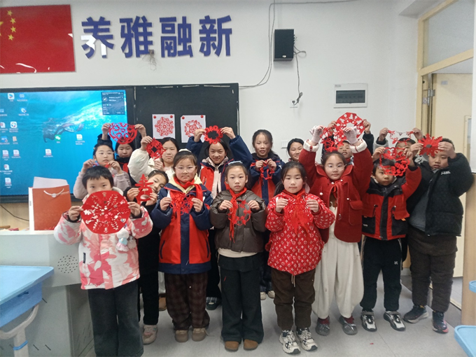 活动中,剪纸社团的老师首先为队员们讲述了剪纸这一传统非遗文化的历史渊源和剪纸的基本概念、方法和技巧,从简单的对折、剪法入手,手把手教授基础技巧。队员们好奇得睁大眼睛,紧紧握着剪刀,小心翼翼地在红纸上勾勒、裁剪,从最初的生疏迟疑,到后来的熟练流畅,一张张普通的彩纸在他们的巧手下,渐渐变成了栩栩如生的小蝴蝶、寓意吉祥的窗花、象征团圆的灯笼等各种图案。