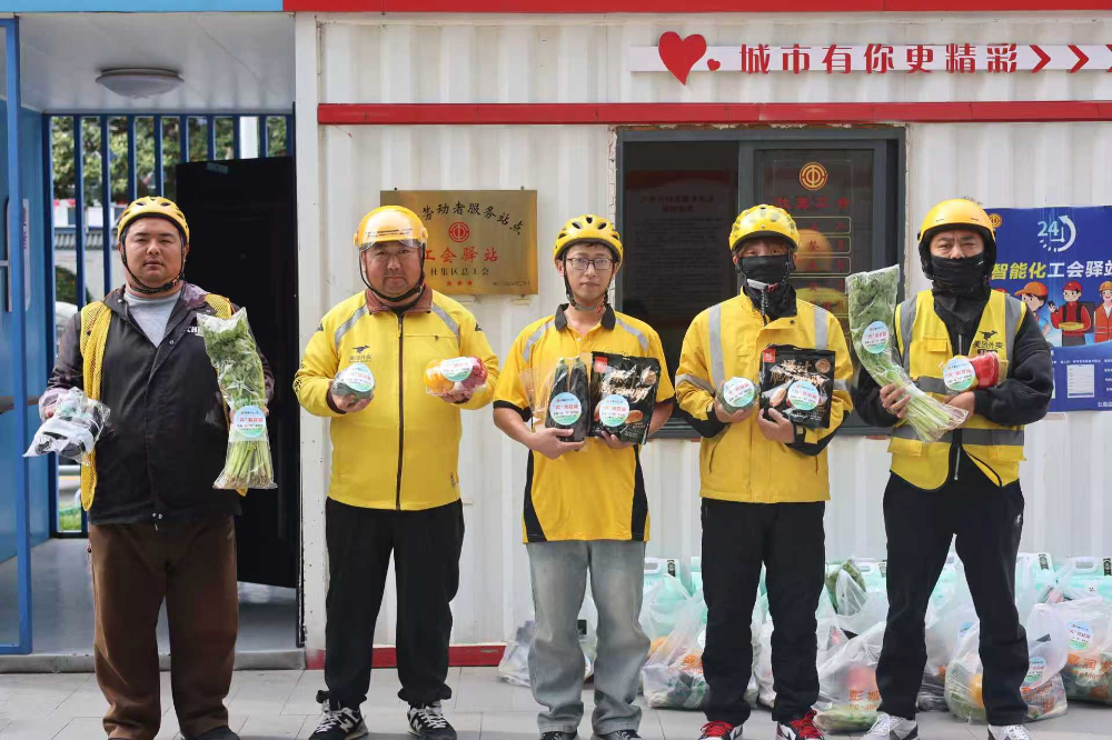 活动现场,区总工会相关负责同志为新就业形态劳动者送上暖心慰问礼包,内含大米、优质肉制品,以及芹菜、茄子、西兰花、彩椒等新鲜蔬菜,饱含着衣食无忧、勤劳肯干、坚持不懈、富足安康的美好寓意,用实实在在的食材向坚守岗位的劳动者们致以崇高敬意。与此同时,驿站也贴心准备了免费饮水、热饭、手机充电、雨伞租借等便民服务。工作人员与大家亲切交流、细心倾听诉求,贴心提醒户外劳动者们累了便可随时走进驿站歇脚休整、补充能量,在忙碌中感受一份温暖与安心。