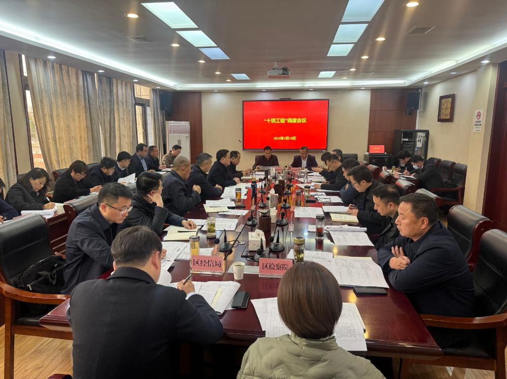 3月18日下午,区委书记尹农纲主持召开“十项工程”调度会议。区领导史庆超、王建辉、王圣臣、李延栋、魏宾、冯轶、徐善鲲、王永生、王劲、吕鹏宇、李涛参加会议。会议听取各专班工作进展情况、存在问题及下步工作计划,对落实“十项工程”年度重点任务进行部署。