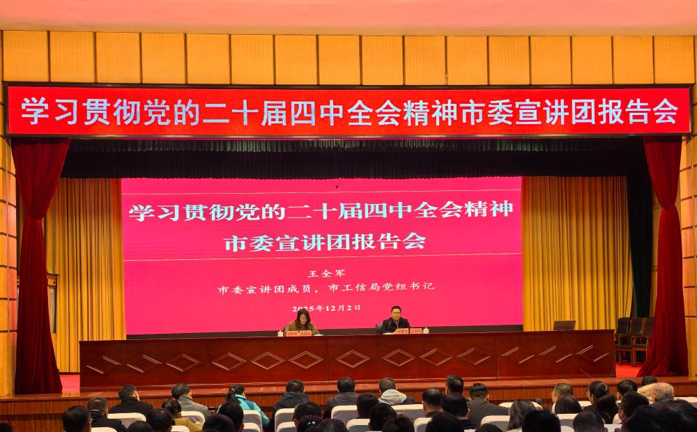 12月2日,学习贯彻党的二十届四中全会精神市委宣讲团报告会在杜集区政府礼堂举行,市委宣讲团成员、市工信局党组书记王全军作专题宣讲。区委常委、宣传部部长文婷婷主持报告会。