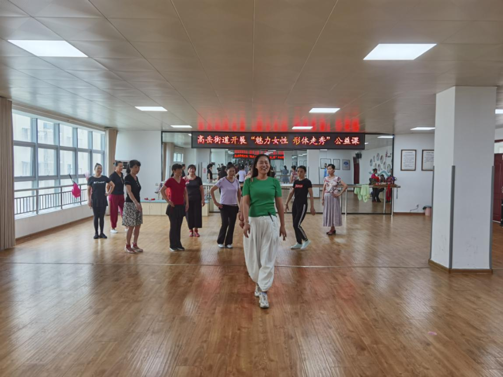为丰富中老年人业余文化生活,让老年人老有所学、老有所教、老有所乐、老有所为。高岳街道综合文化站开展了“魅力女性,形体走秀”公益课。