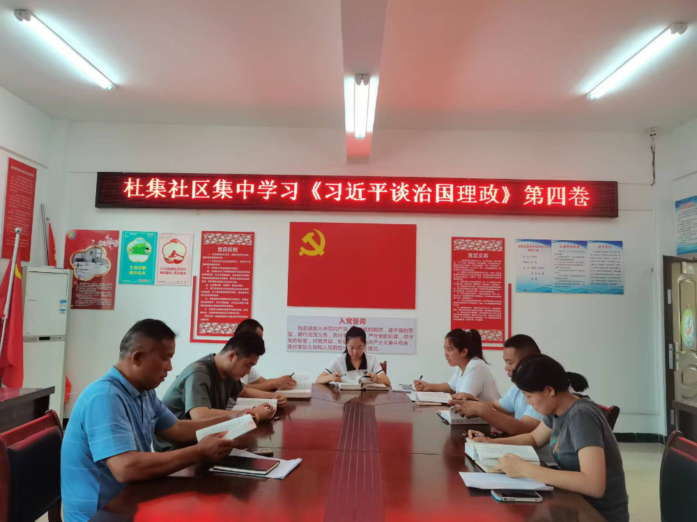 2022年9月18日下午,杜集社区组织两委成员集中学习《习近平谈治国理政》第四卷,在学习过程中,大家认真读原著、学原文、悟原理,并结合实际工作主动思考,畅谈学习心得,促进学习提质增效。社区党总支书记王伟伟强调要认真研读《习近平谈治国理政》第四卷内容,深入学习贯彻习近平新时代中国特色社会主义思想,坚定全心全意为民服务的理想信念,把学习成效用在推动社区各项工作上,以实际行动迎接党的二十大胜利召开。