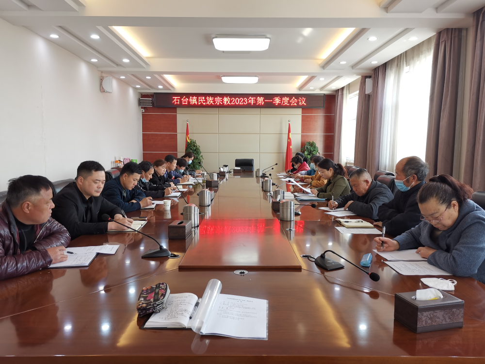 2023年3月7日上午,石台镇召开民族宗教工作第一季度会议。镇分管领导,镇民宗助理员,各村(社区)民宗协理员,各宗教活动场所负责人及教职人员参加了会议。