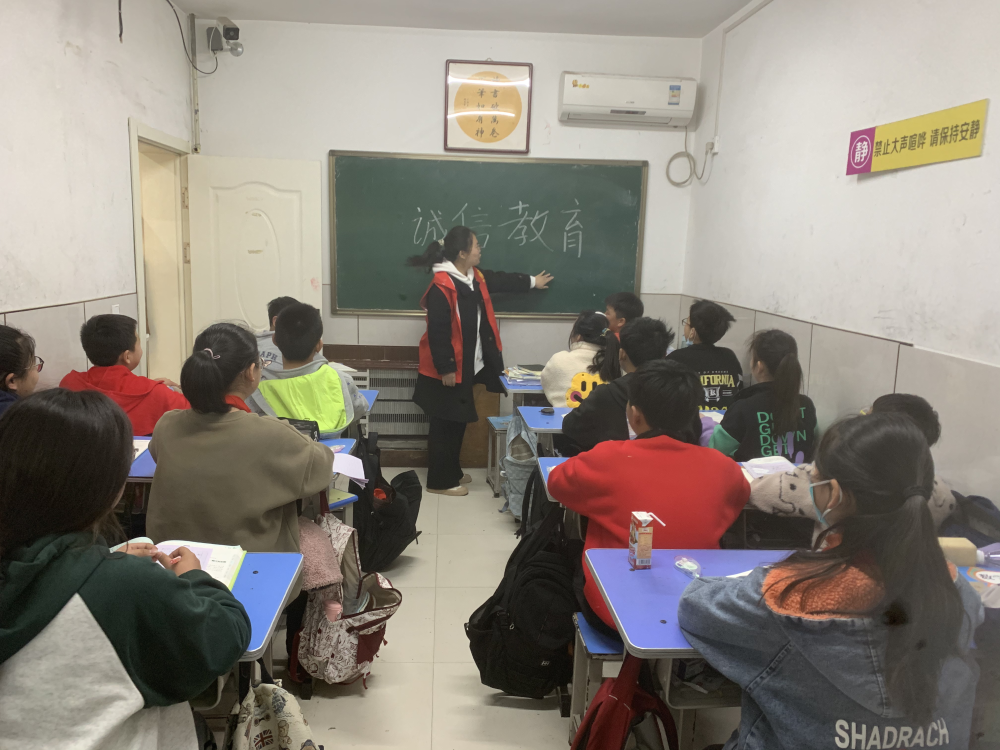 活动中,志愿者走进校园利用3·15消费者权益保护日契机,展开“诚信教育”主题活动,向学生们简述国际消费者权益日的来历,讲述如何鉴别假冒伪劣商品的安全小常识,提高同学们的自我保护意识。