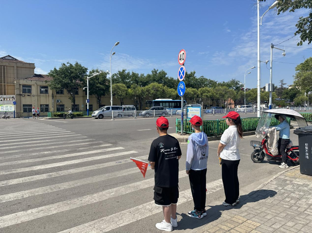 为了丰富社区青少年暑期生活,培养未成年人的交通安全意识,强化学生自我保护能力,2023年7月17日,双龙社区开展“道路彩虹”交通安全劝导志愿服务活动。小志愿者们头戴小红帽,手持小红旗积极参与本次社区文明劝导志愿服务活动,按照《文明交通志愿劝导工作规范》要求,志愿者积极 劝导路人和非机动车驾驶人按照红绿灯指示通行。