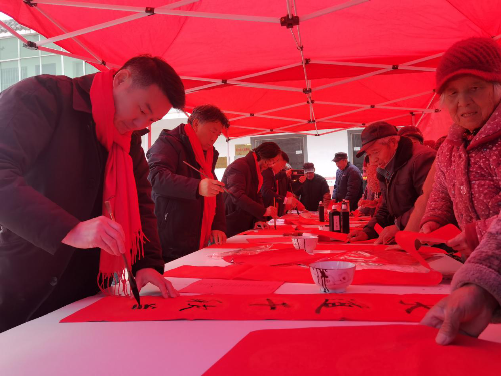 上午9时,村部广场上传来了阵阵墨香,迎新春送春联活动正式开始,吸引众多村民前来参加短短三个小时,近100副春联和福字送到了居民手中。