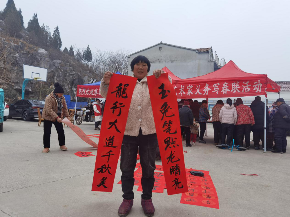 为丰富群众文化生活,喜迎龙年新春,2024年2月7日上午,矿山集街道邀请李渡书画院艺术家到张院村开展“迎新春送春联”活动。
