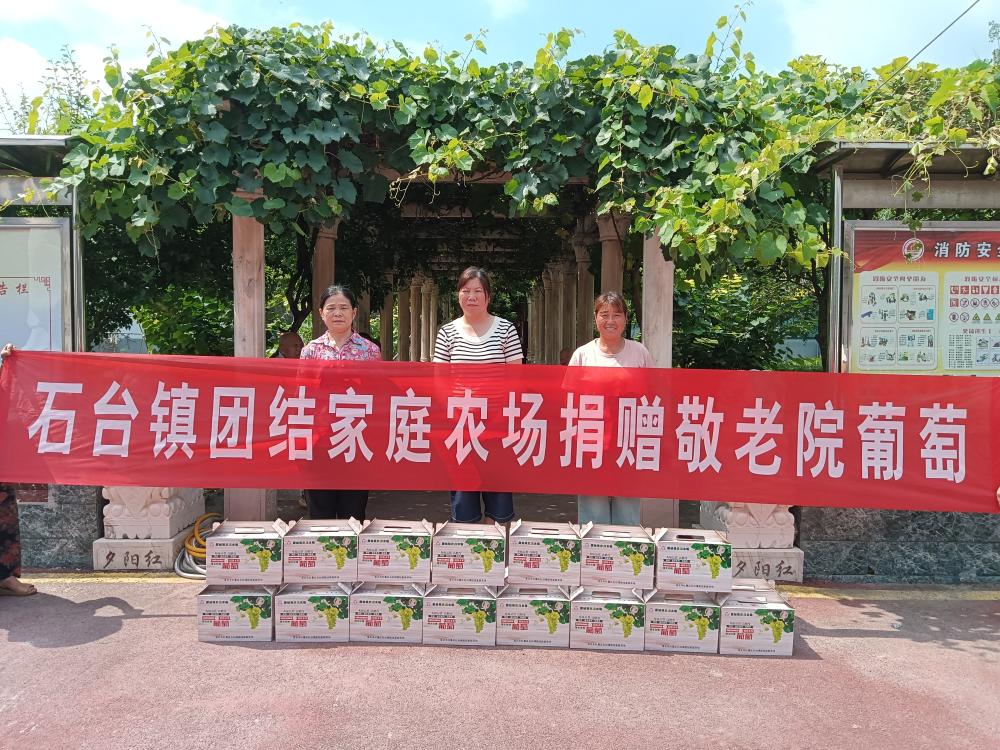 8月2日上午,石台镇团结家庭农场负责人武敏冒着酷暑高温到石台镇敬老院看望慰问孤寡老人,为孤寡老人们赠送了22箱葡萄,老人们的脸上洋溢着欣喜的笑容,对团结农场的关爱之情表示感谢。