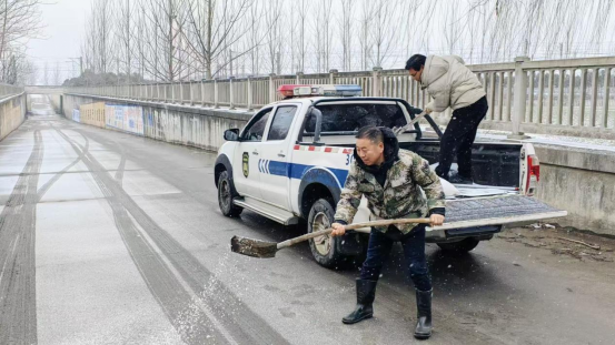 “道路通,民心安。”降雪伊始,镇政府便第一时间召开应急部署会,明确分工、压实责任,组织镇村干部、应急队员、志愿者组成多支保障队伍,在辖区主次干道、乡村小路、陡坡弯道等关键路段开展作业。工作人员手持铁锹、扫帚等工具,顶着寒风对积雪进行清扫,同时调配撒盐车,对结冰路段均匀撒布融雪盐,加速冰雪融化,全力打通群众出行“安全通道”。“雪下得又大又急,路面很快就结冰了,我们想着早一点清完、早一点撒上盐,群众出门就少一分危险。”正在现场作业的镇应急办工作人员说道。从清晨到日暮,凛冽寒风中,一个个忙碌的身影穿梭在积雪中,用汗水换来了道路的畅通无阻,为群众出行保驾护航。