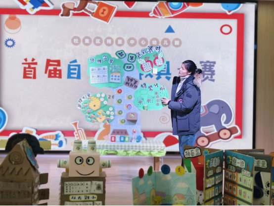在展示环节中,教师围绕作品名称、设计思路、教育功能及安全规范等方面进行了系统阐述与现场演示。评委依据教育性、创新性、可操作性及安全性等维度对参赛作品进行综合评审,重点关注教具是否支持幼儿多领域协同发展。