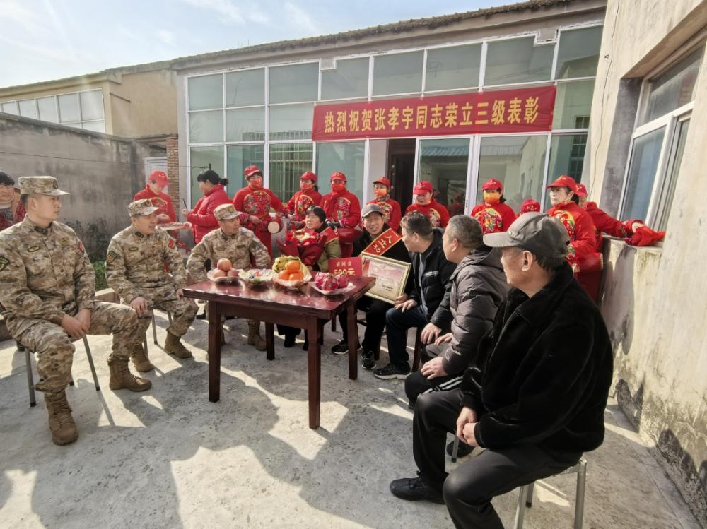 2月13日上午,杜集区矿山集街道人民武装部举行庄重仪式,为辖区在部队荣立三等功、荣获三级表彰的现役军人登门送立功喜报。区人武部部长、区退役军人事务局副局长出席活动,街道武装部工作人员共同参与,将军人荣誉与组织关怀送到军属心坎上。