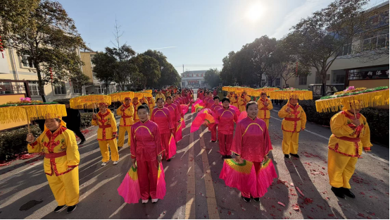 正月初一,阳光明媚,朔里镇内锣鼓喧天、人声鼎沸。一场传统民俗表演精彩上演,为居民送上马年新春祝福。上午八时,威风锣鼓队率先登场,队员身着盛装、精神抖擞,震天锣鼓瞬间点燃节日热情,拉开新春喜庆序幕。