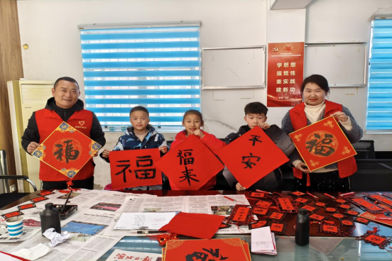 孩子们神情专注,握着毛笔认真书写,一张张红彤彤的“福”字跃然纸上,或端庄、或飘逸,承载着孩子们对新年的美好期盼。活动结束后,孩子们捧着亲手书写的福字,满心自豪,纷纷表示要将这份福气送给亲人朋友。