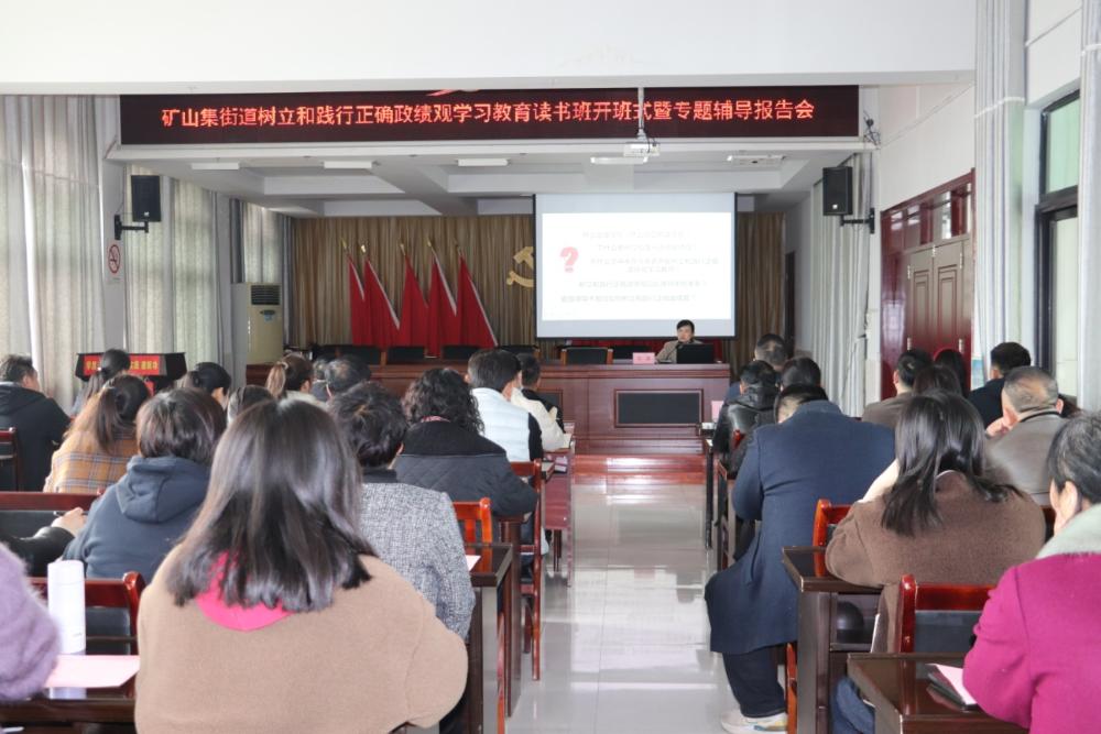 3月23日下午,矿山集街道举行树立和践行正确政绩观学习教育读书班开班式暨专题辅导报告会,邀请市委党校党史党建教研室主任、教授许莉作专题辅导。街道班子成员、机关党员、各部门负责人、各村(社区)“两委”及后备干部等参加培训。