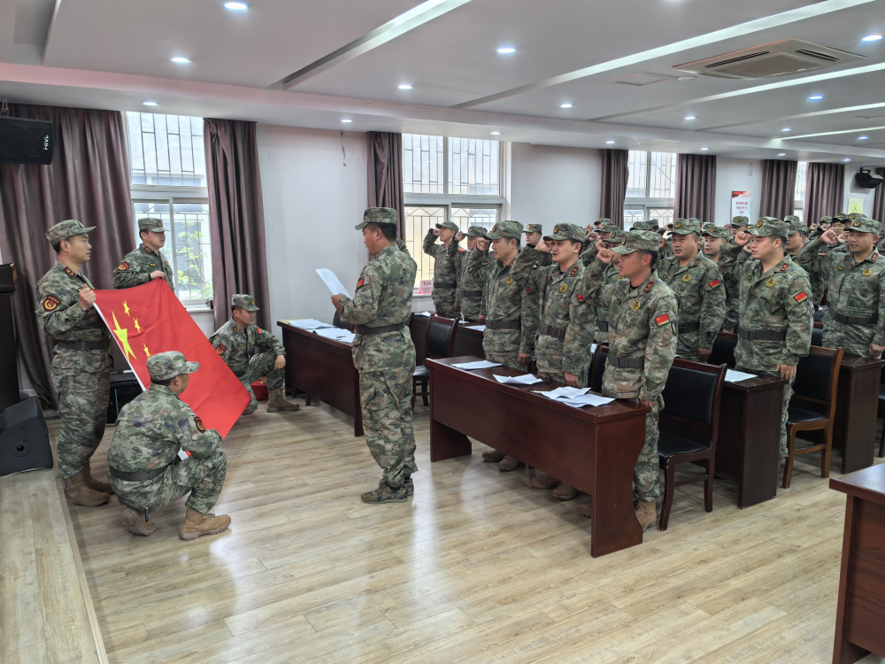 大会在庄严的《中国人民解放军军歌》中拉开序幕,全体民兵军容严整、精神抖擞、列队整齐,逐一接受点名核验,全程程序规范、秩序井然。会上宣读了民兵干部任职命令、出入队人员名单,全体民兵庄严宣誓,铿锵誓言彰显了新时代民兵忠诚履职、担当作为的坚定决心,新入队民兵代表现场作表态发言。