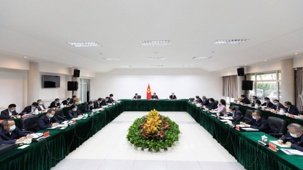 10月26日,全国人大常委会副委员长、中国法学会会长王晨主持召开中国法学会会长会议。摄影 戎珊