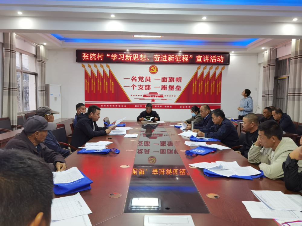 2022年10月15日,张院村组织两委成员、村组干部开展“学习新思想、奋进新征程”宣讲活动,由村党总支书记张全军为大家宣讲,宣讲的主要内容是号召张院村党员干部继续以永不懈怠的精神状态永不停滞的前进姿态扎实做好张院村人居环境整治,乡村振兴等工作。