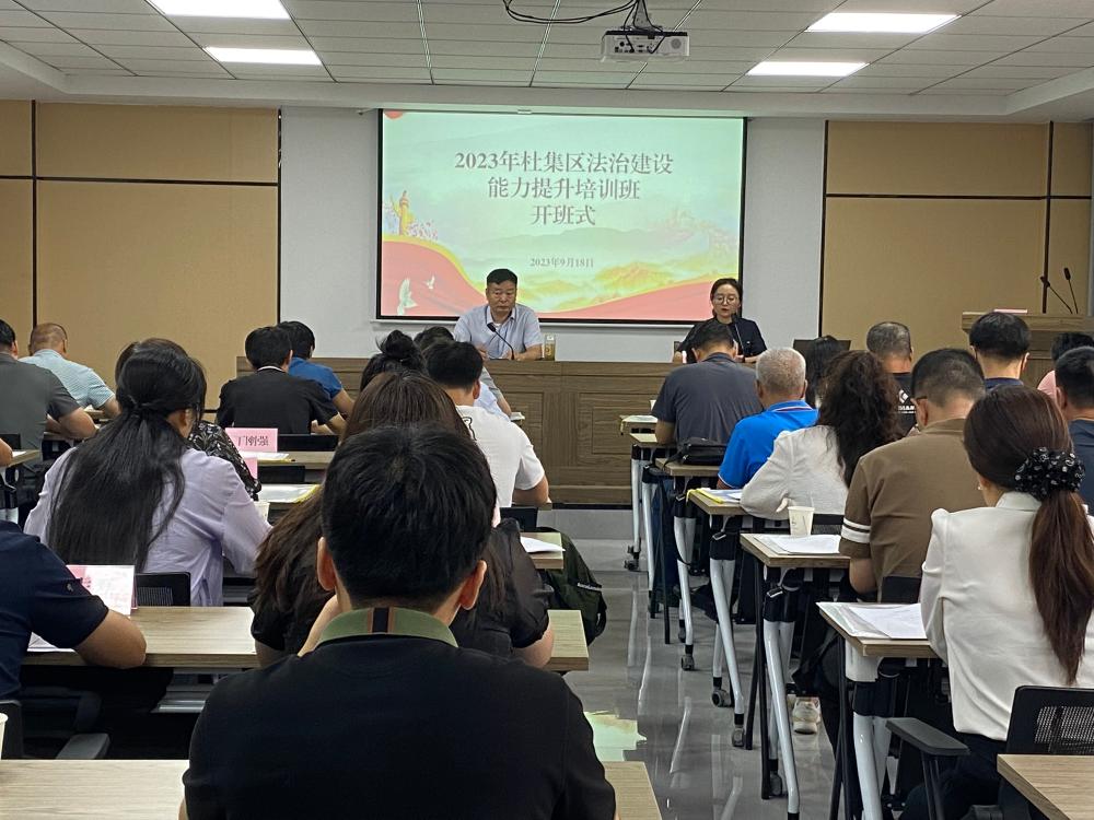 为全面学习贯彻习近平新时代中国特色社会主义思想和党的二十大精神,不断提高领导干部法治思维能力和法治水平,推动全面依法治区工作再上新台阶,9月18日-19日,区委依法治区办联合区委党校在区委党校东山路校区举办全区法治建设能力提升专题培训班。区委常委、政法委书记冯轶出席开班式并讲话,区司法局党组成员、副局长郭莹莹主持。各镇(街道)、区直各有关单位法治工作分管负责人共50人参加此次培训。