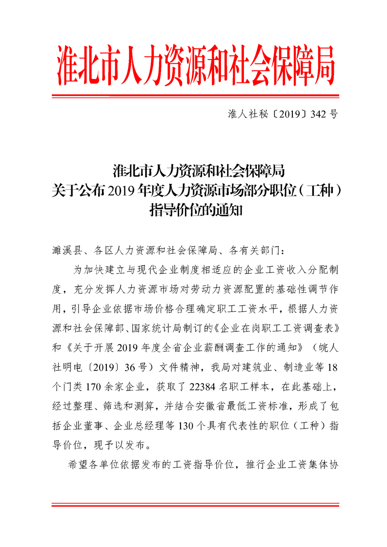 区级无人力资源市场工资指导价位权利,由市级统一发布。目前省人社厅2022年企业薪酬调查信息尚未发布,淮北市现继续延用2019年度人力资源市场部分职位(工种)指导价位, 特此说明。