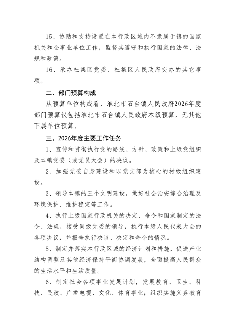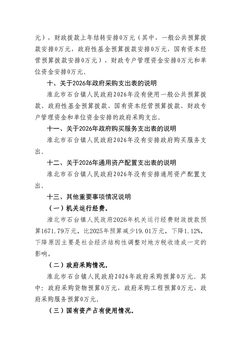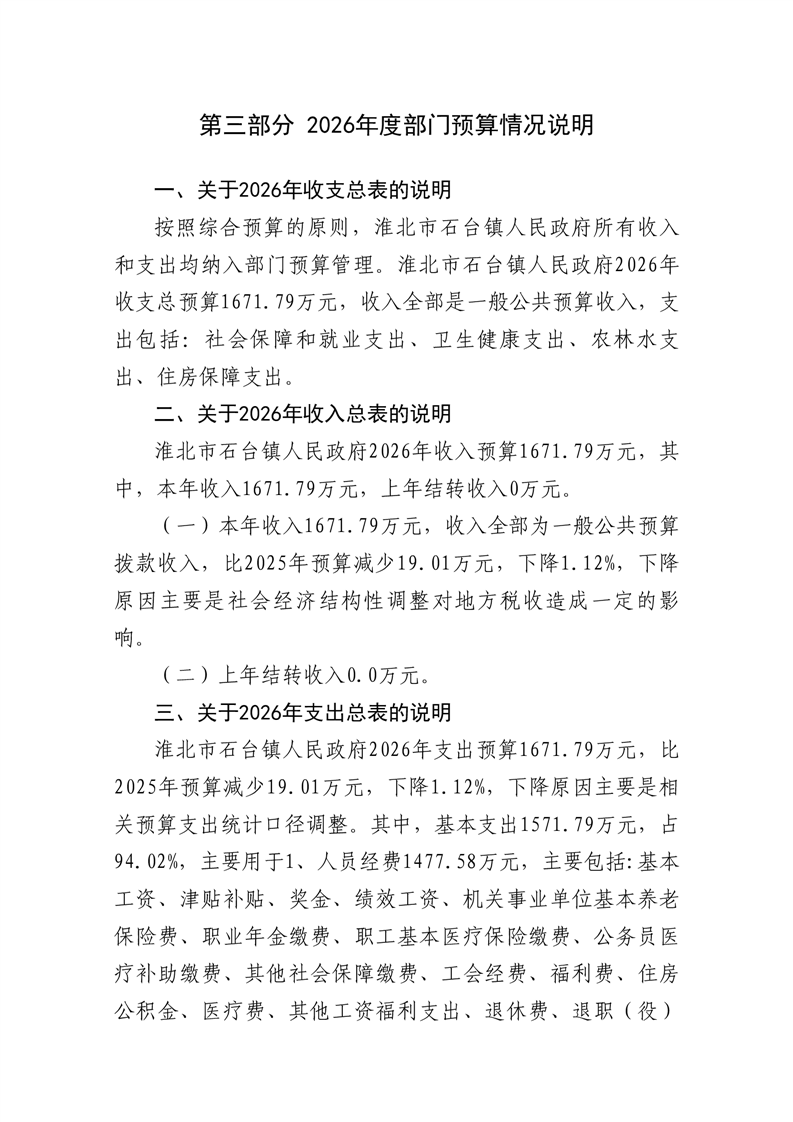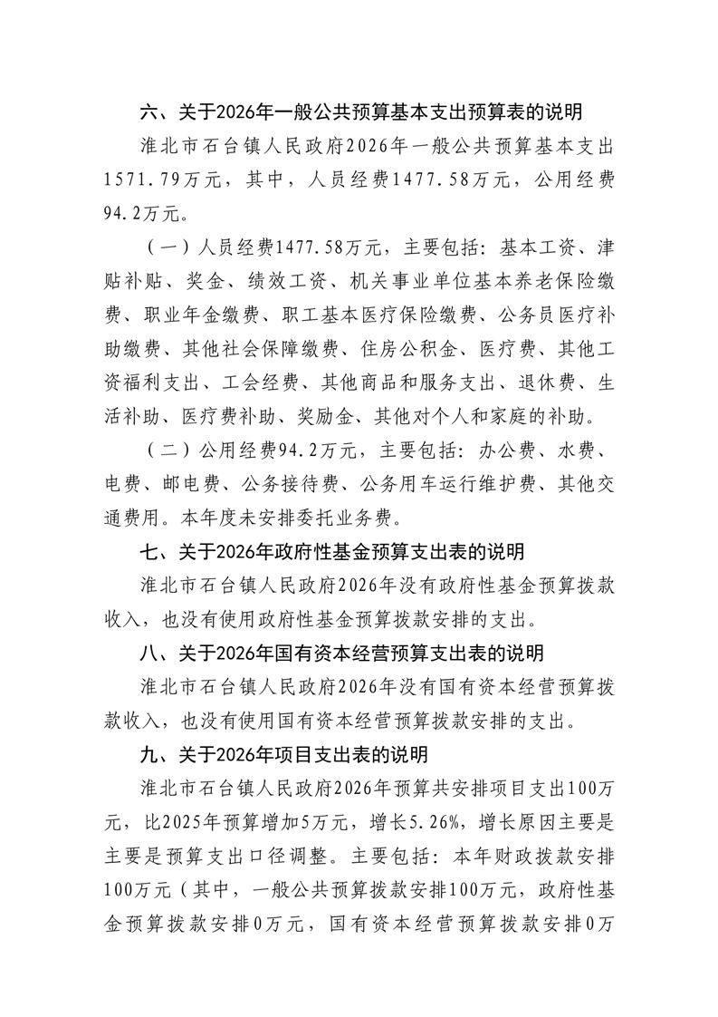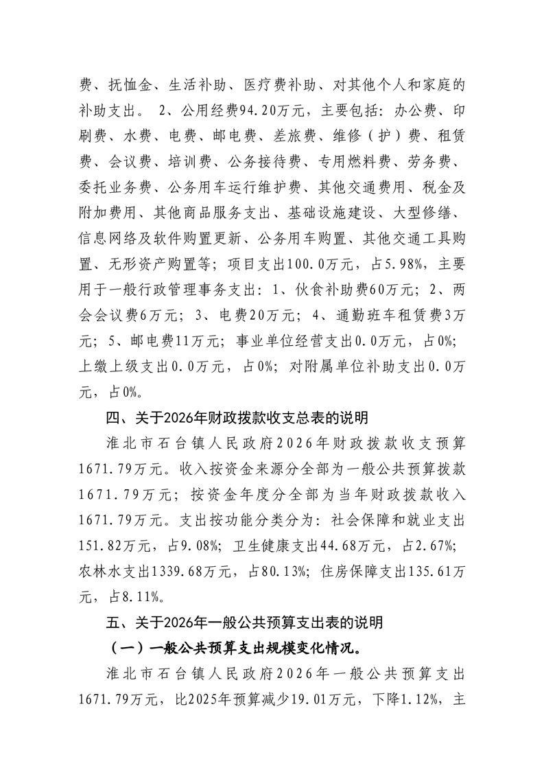 石台镇政府2026年预算情况说明