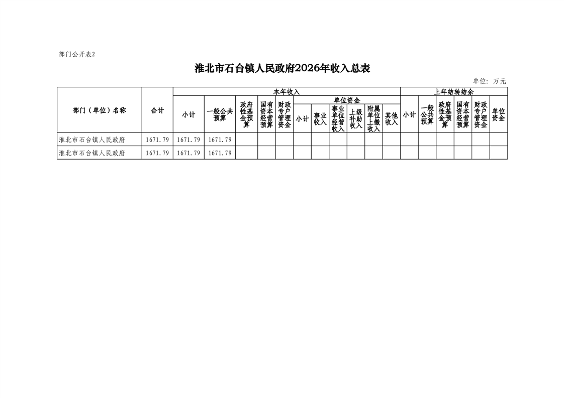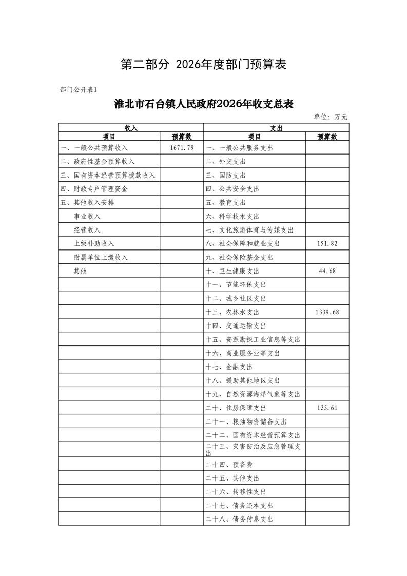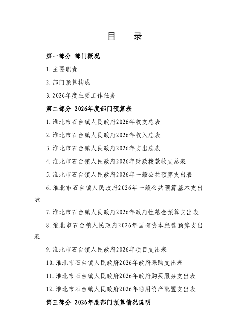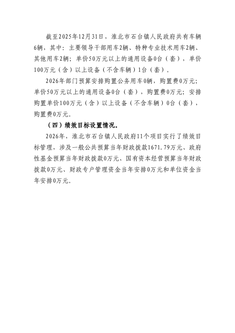 石台镇政府2026年预算情况说明