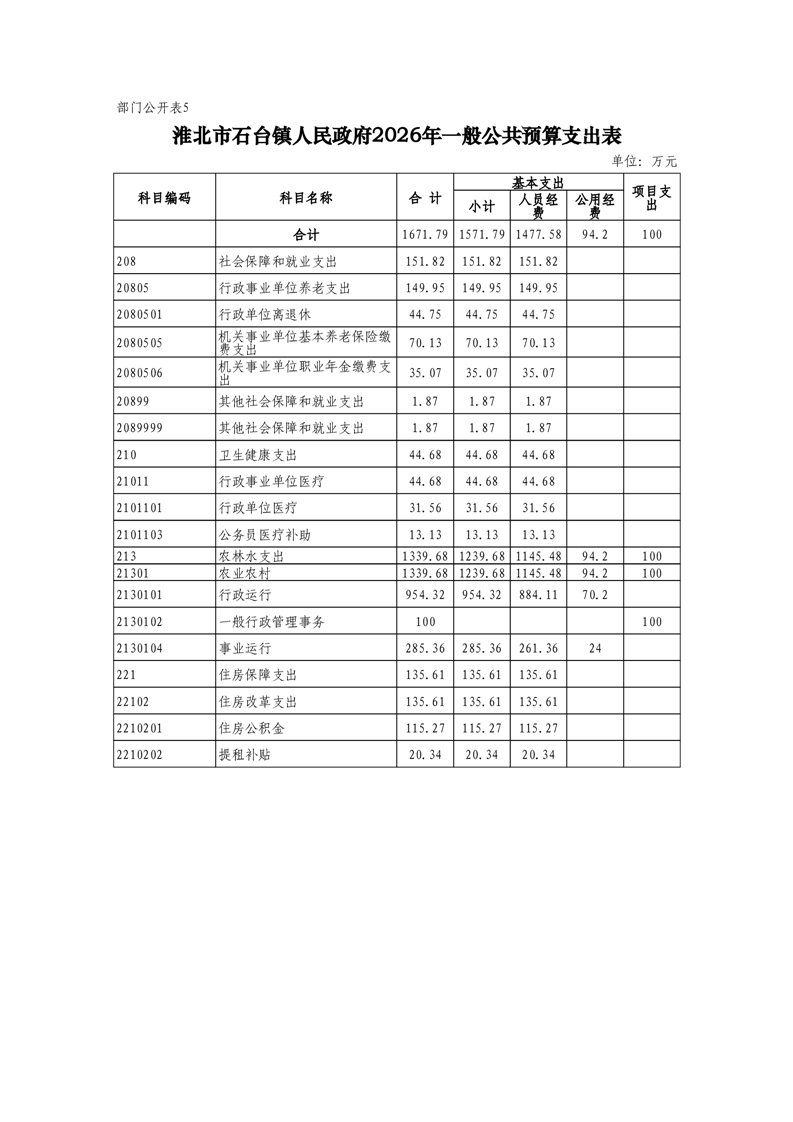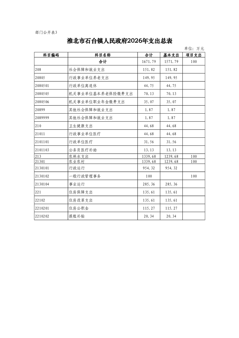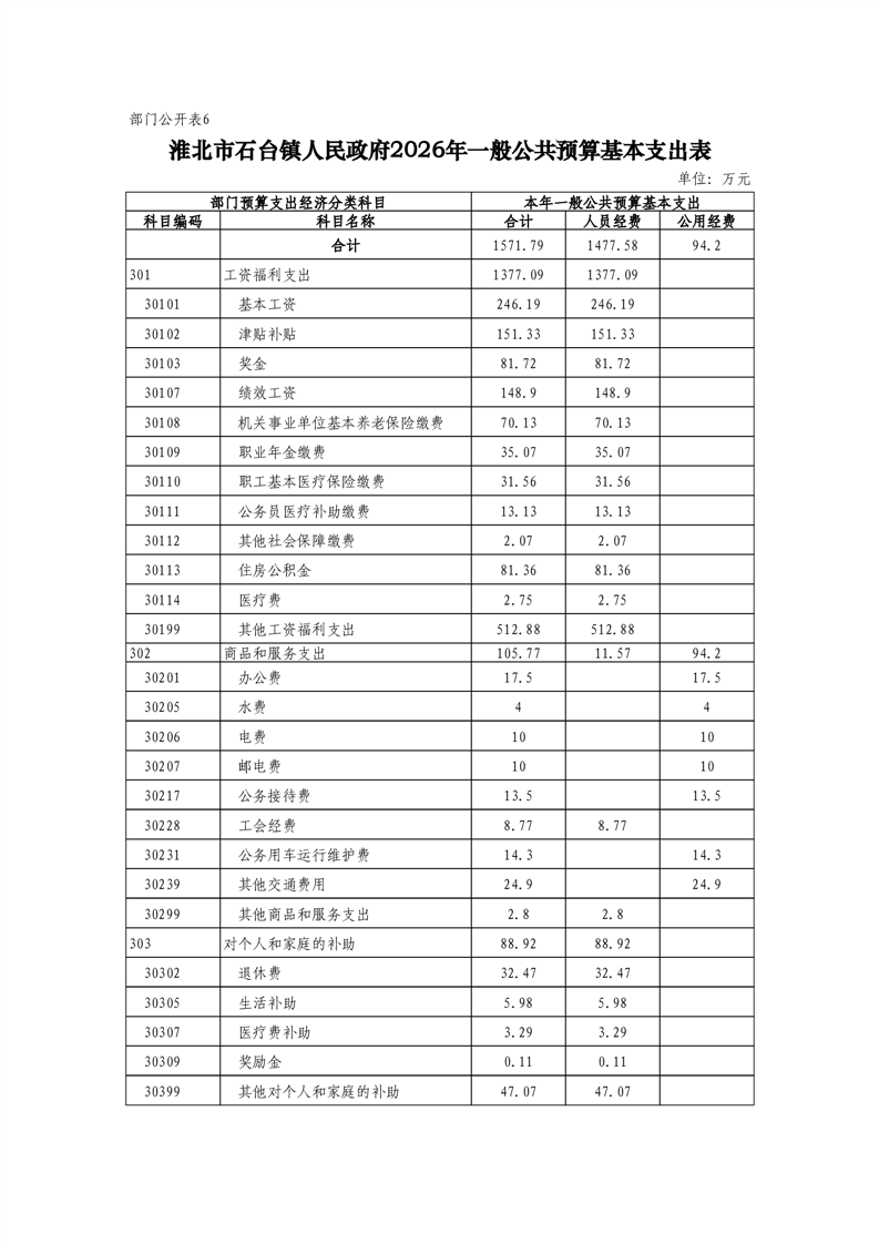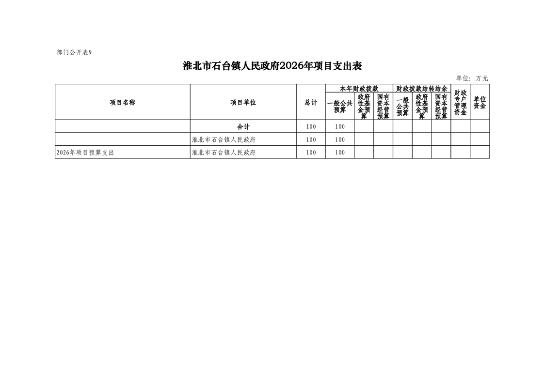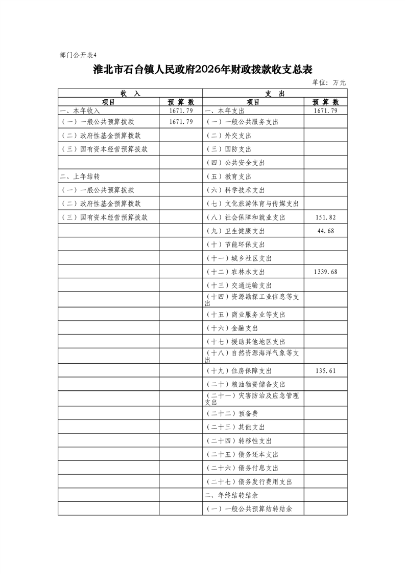 石台镇政府2026年预算情况说明