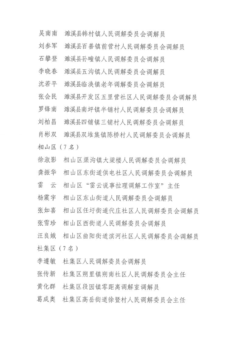 淮北市司法局关于表彰全市人民调解工作表现突出集体和个人的决定