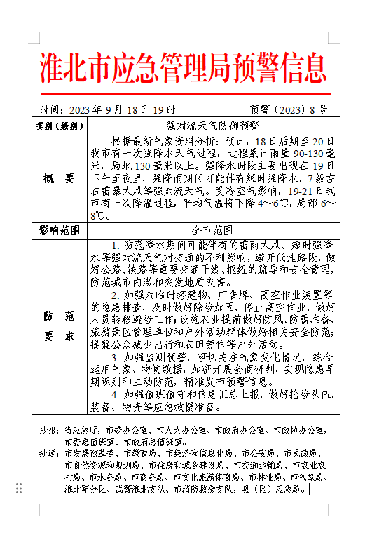 【自然灾害类预警信息】9月18日至20日强对流天气防御预警