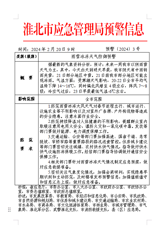 【自然灾害类预警信息】雨雪冰冻天气防御预警