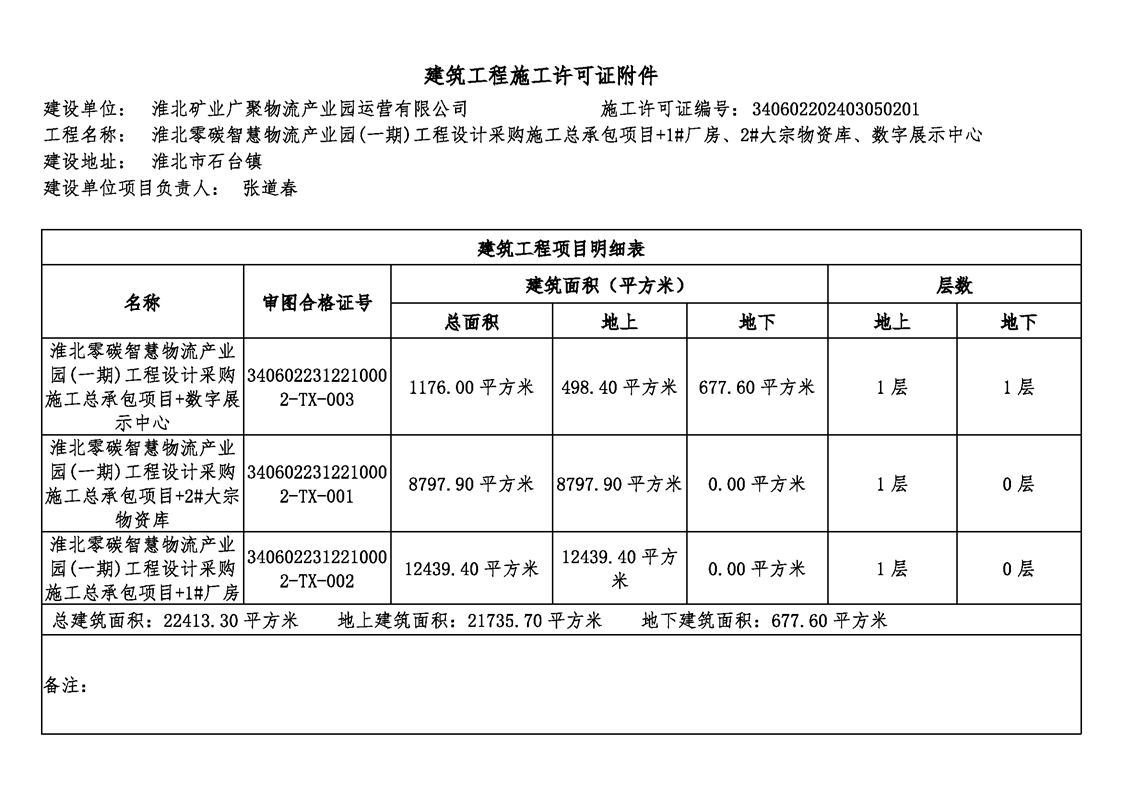 淮北零碳智慧物流产业园(一期)工程设计采购施工总承包项目+1#厂房、2#大宗物资库、数字展示中心施工许可证