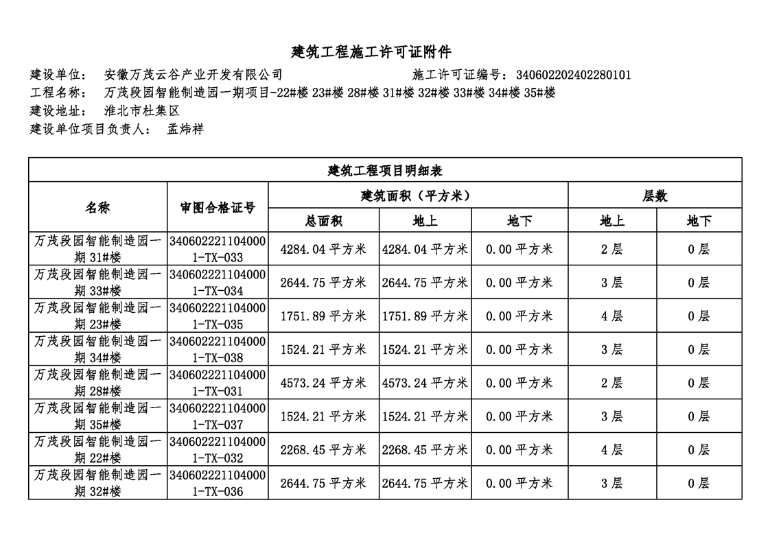 万茂段园智能制造园一期项目-22#楼23#楼28#楼31#楼32#楼33#楼34#楼35#楼施工许可证