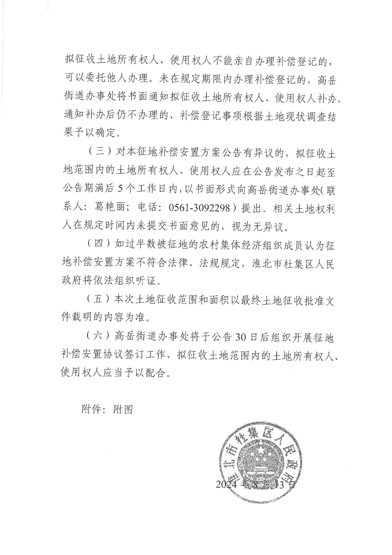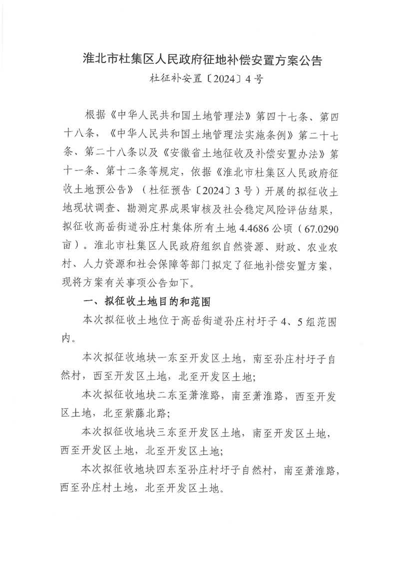 杜集区人民政府征地补偿安置方案公告(杜征补安置〔2024〕4号)