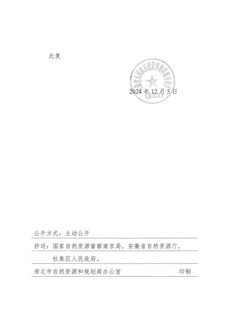 关于杜集区2024年第18批次(工矿废弃地复垦挂钩)村庄建设用地的批复