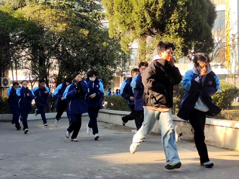 ——淮北市开渠中学开展2025年消防安全疏散演练