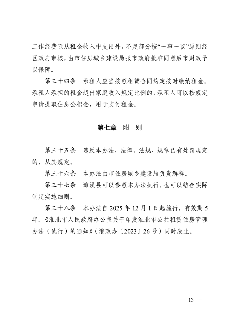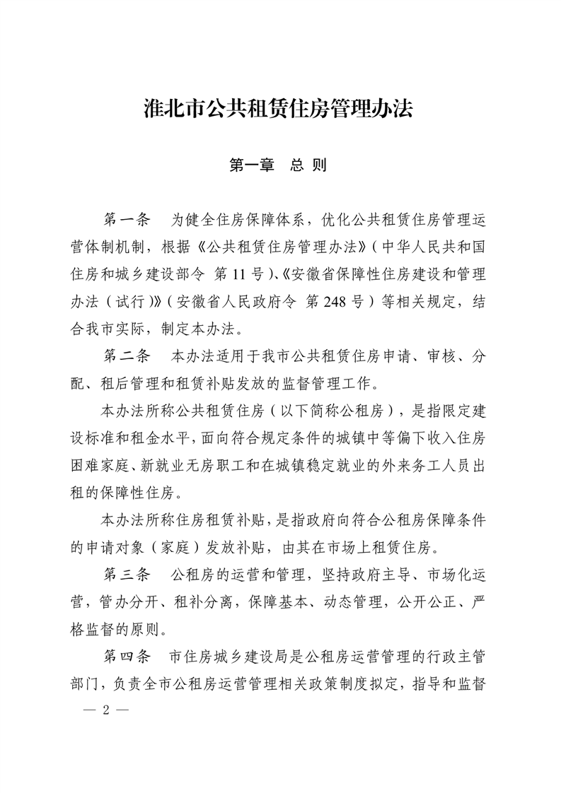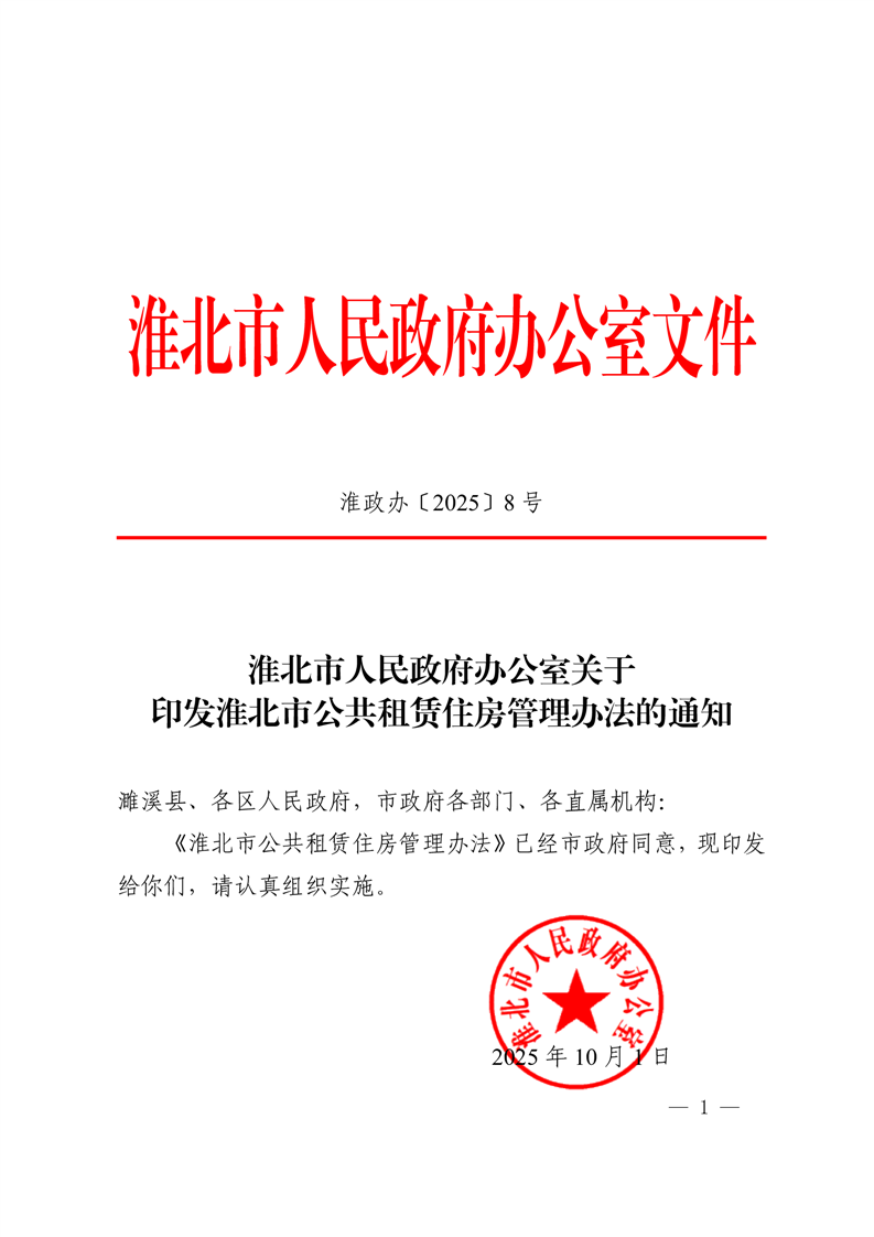 淮北市人民政府办公室关于印发《淮北市公共租赁住房管理办法》的通知
