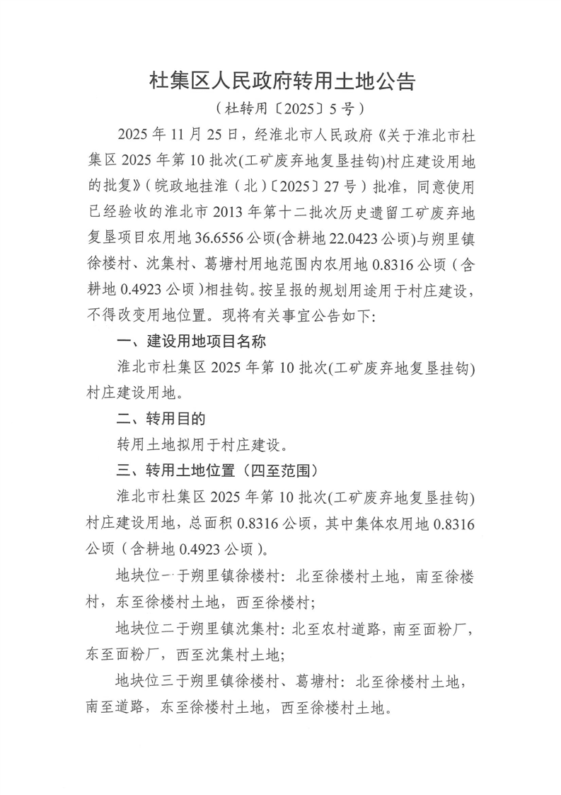 杜集区人民政府转用土地公告(杜转用〔2025〕5号)