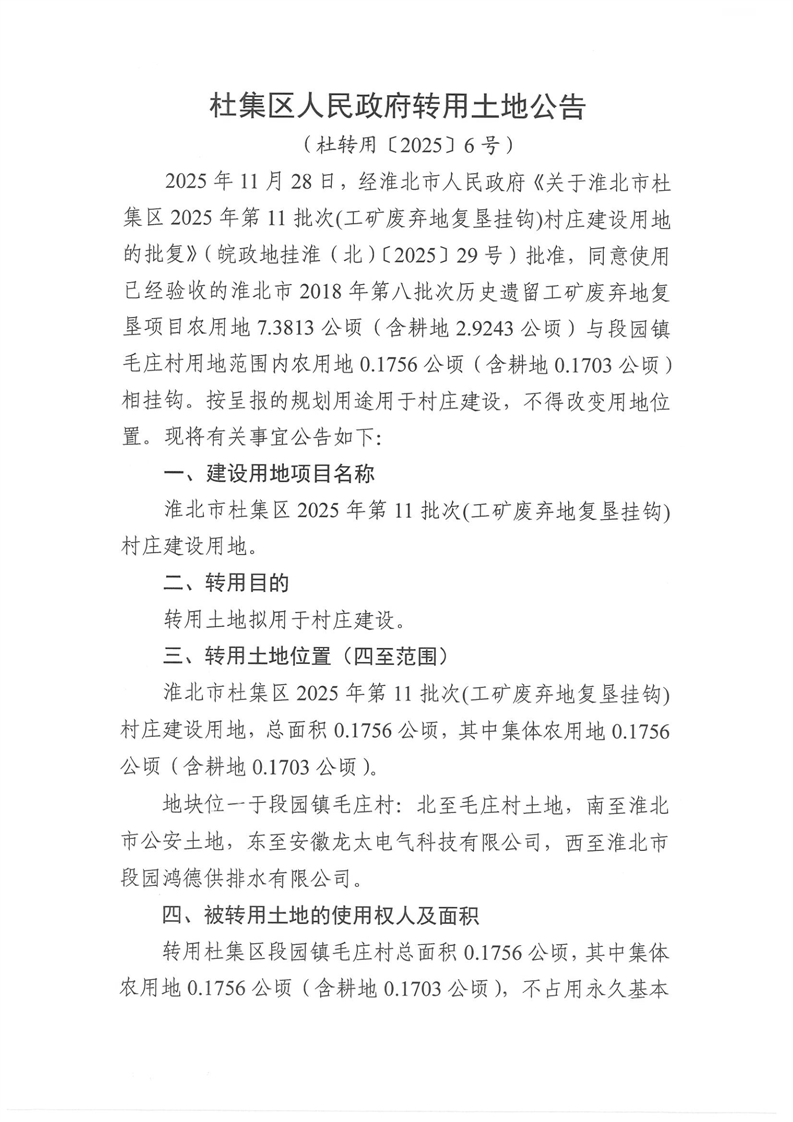 杜集区人民政府转用土地公告(杜转用〔2025〕6号)