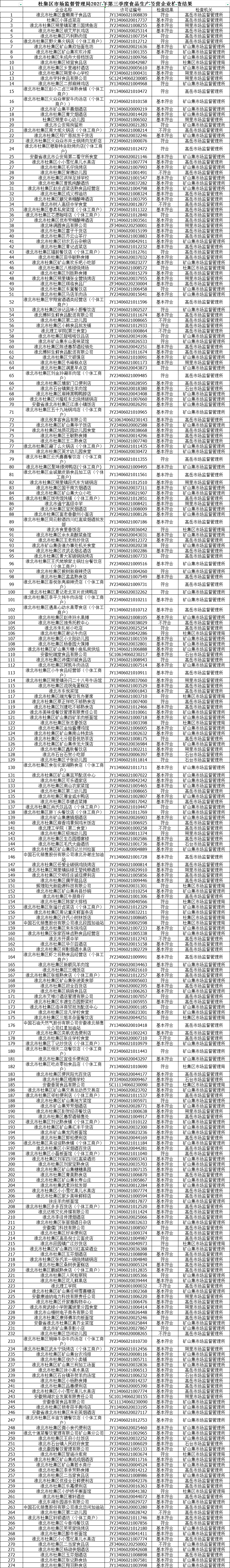 杜集区市场监督管理局2025年第三季度食品生产经营企业检查结果