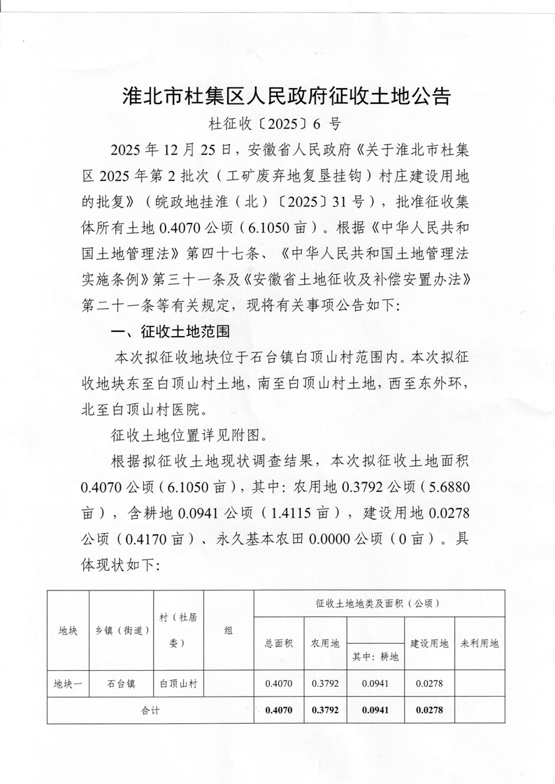 淮北市杜集区征收土地公告(杜征收〔2025〕6号)