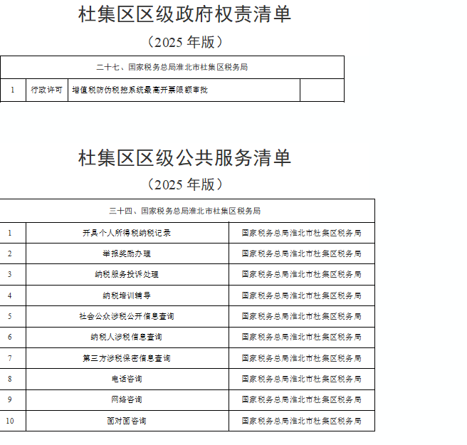 杜集区区级权责清单和区级公共服务清单