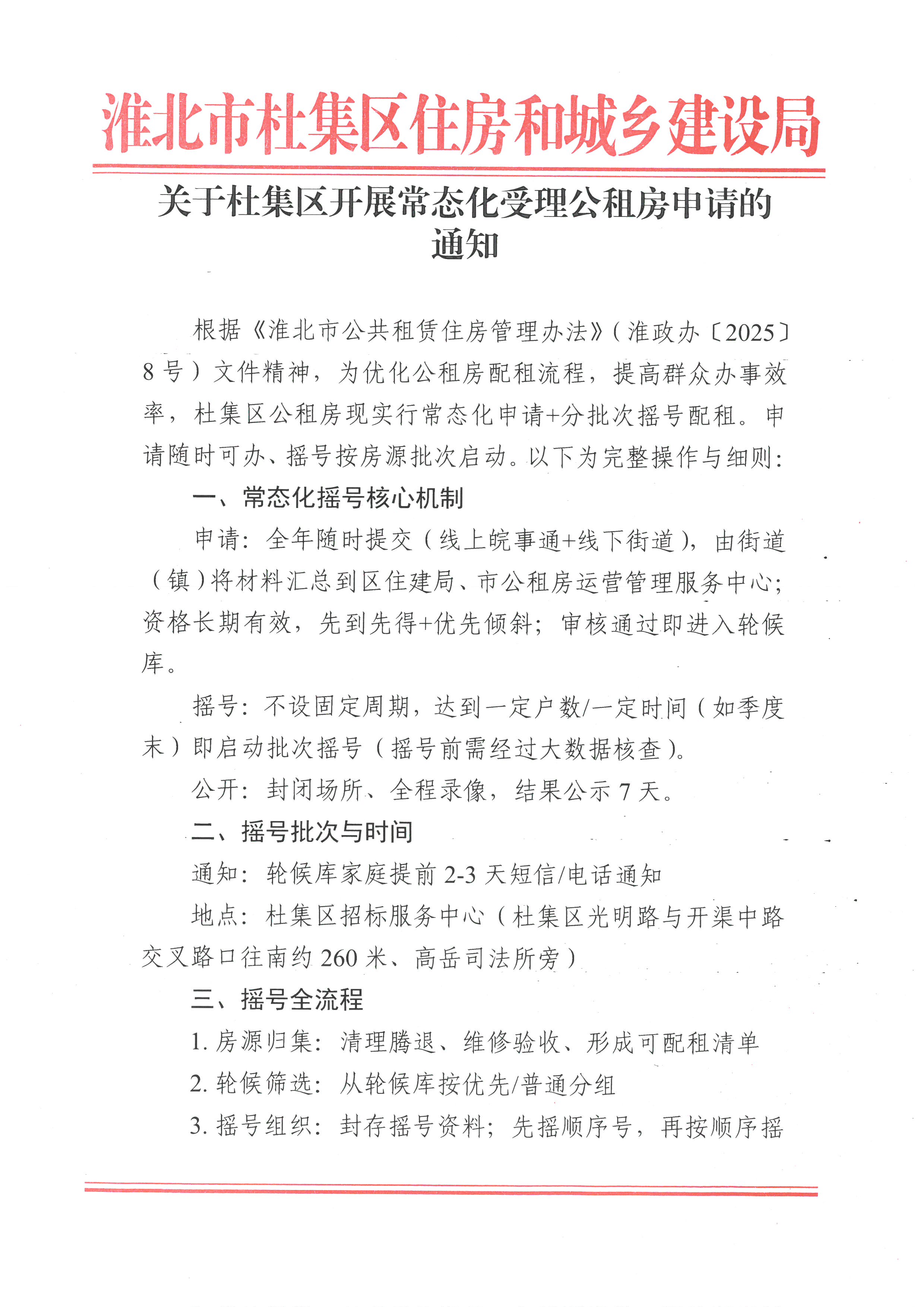 《关于杜集区开展常态化受理公租房申请的通知》