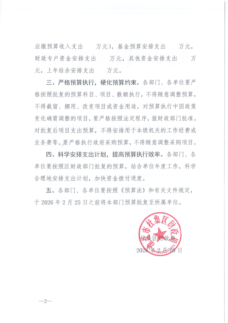 关于2026年度杜集区部门预算的批复